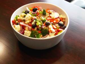 This little Flowerpot Salad would be perfect at a shower or tea party. The “pot” is a long thin slice of zucchini wrapped in a circle and held together by a fancy little toothpick with a frill on top. Inside place a couple spoonfuls of your favorite hummus. “Plant” celery and carrot sticks along with strips of red pepper, broccoli spears, a few salad greens and an edible flower. So pretty, and healthy, too!