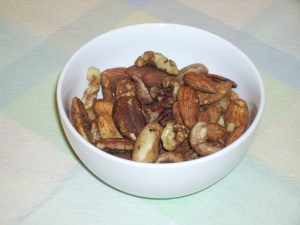 Stir until well blended,  add to nuts/seeds and toss until the spices are evenly distributed.  After marinating for two hours, taste to see if you’d like it to be saltier or spicier and adjust if desired; then marinate for two more hours.