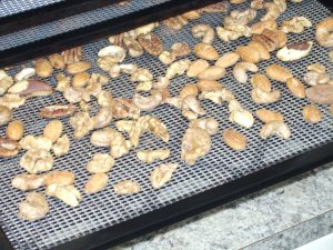 NOTE: Dehydrated nuts will keep in your pantry in a well-sealed container for about one month, almost indefinitely in the frig.